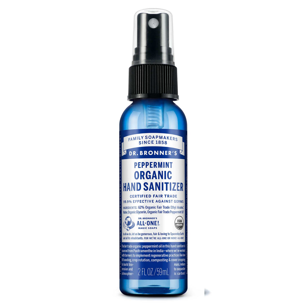 Dr. Bronner’s Peppermint Organic Hand Sanitizer offers quick and effective germ-killing power while leaving your hands feeling fresh and invigorated. Made with simple, organic ingredients like ethyl alcohol, water, and organic peppermint oil, this spray sanitizes without harsh chemicals or synthetic fragrances. Perfect for on-the-go use, it’s gentle enough for hands and even surfaces, providing a natural, refreshing clean.