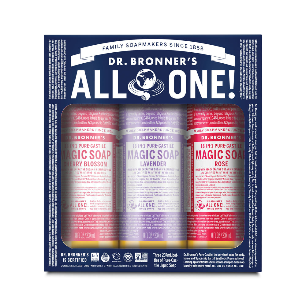 This limited-edition Florals Liquid Soap Multi-Pack contains x3 237mL bottles of our favourite foral scented Pure-Castile Liquid Soaps in 237mL - Cherry Blossom, Lavender and Rose.