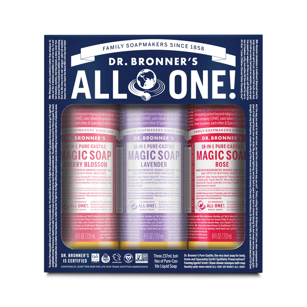 Dr. Bronner’s lathers up for a refreshing clean—and goes far beyond the shower! Use for: