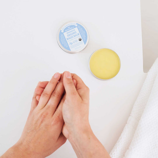 Dr. Bronner's Baby Unscented Organic Magic Balm provides instant relief and protection from wind-cold-clothing that has rubbed you raw. Soothe skin safely and simply – no synthetic ingredients – certified to the same National Organic Program that certifies food. Made from a soothing blend of organic beeswax, organic coconut, organic avocado oil, organic jojoba oil and organic hemp oil.