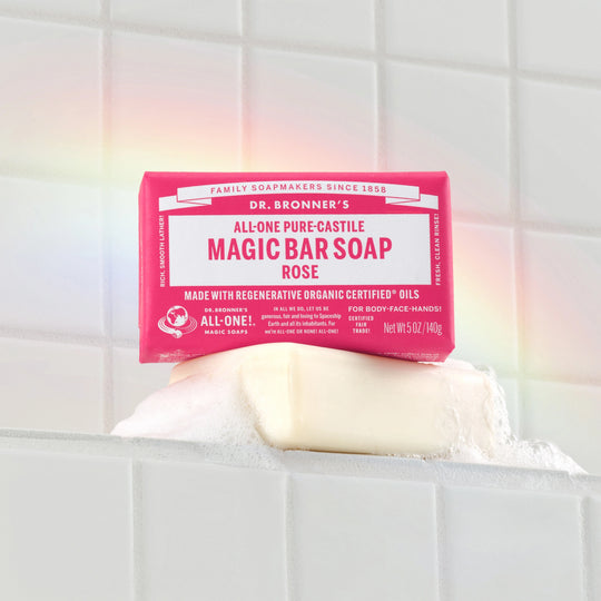 Dr. Bronner's Pure-Castile Bar Soaps are vegan, gentle and versatile, good for washing body, face or hair! Enjoy only 2 cosmetics, enough sleep & Dr. Bronner's Magic Soaps to clean-body-mind-soul-spirit instantly uniting One! All-One!! Read Lisa Bronner's Bar Soaps Dilutions Cheat Sheet.