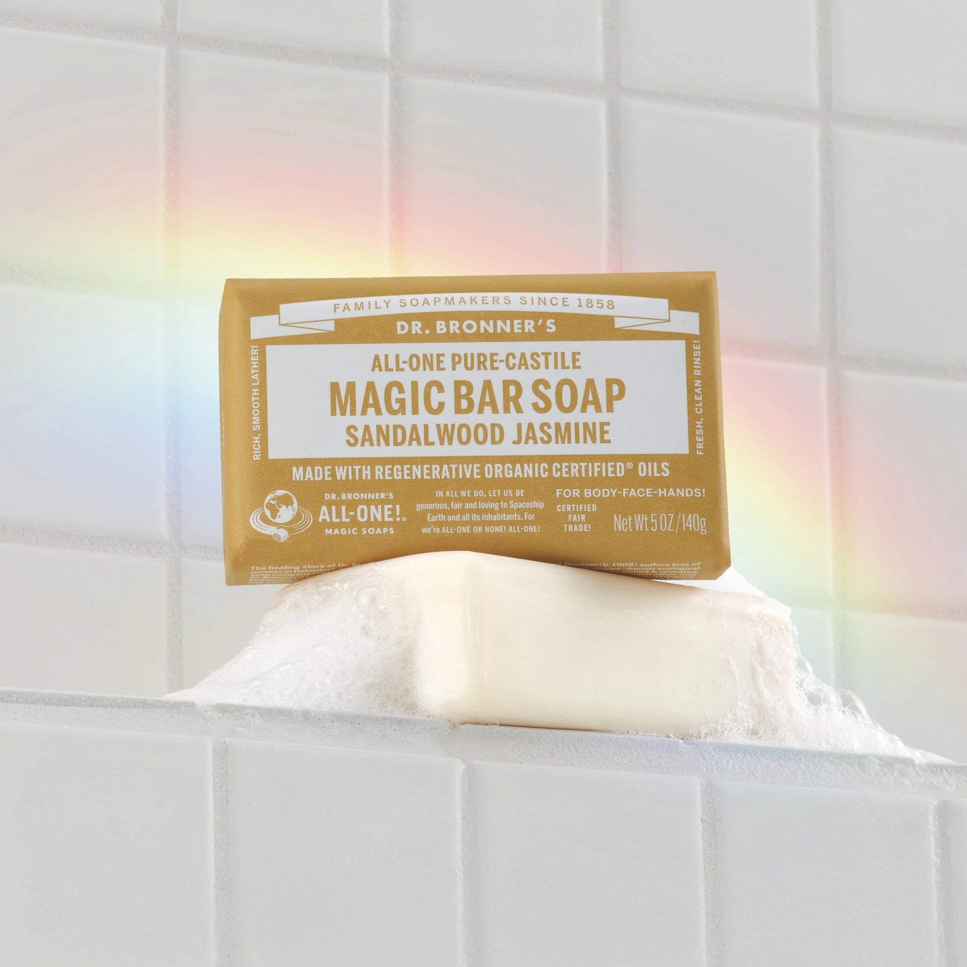 Dr. Bronner's Pure-Castile Bar Soaps are vegan, gentle and versatile, good for washing body, face or hair! Enjoy only 2 cosmetics, enough sleep & Dr. Bronner's Magic Soaps to clean-body-mind-soul-spirit instantly uniting One! All-One!! Read Lisa Bronner's Bar Soaps Dilutions Cheat Sheet.